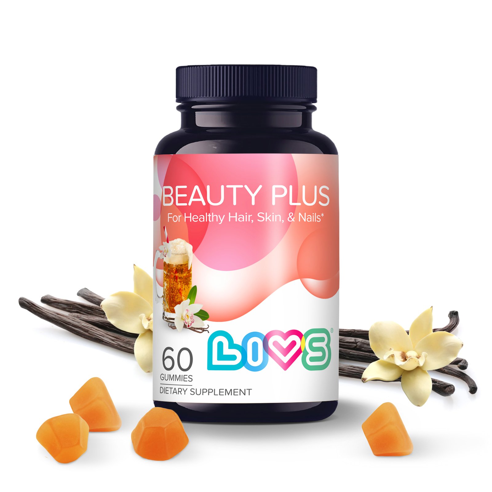 LIVS BEAUTY PLUS - премиальный витаминно-минеральный комплекс для поддержания красоты. Мармеладные пастилки со вкусом крем-сода улучшают состояние кожи, волос и ногтей у взрослых. Легко усваиваемая пектиновая основа с сиропом тапиоки.